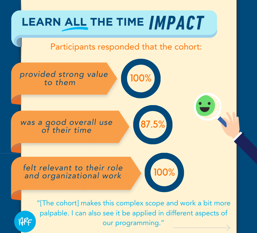 The impact was immediate. One cohort member shared, “We started meeting weekly as a team of key stakeholders to talk all things evaluation—from logistics needs to new questions to support the new curriculum.” Another noted that the series “helped energize my data and evaluation projects and goals, and I am already implementing things that have sat for years undone!”